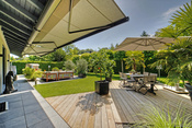 Der gepflegte Garten mit Süd-Ausrichtung verfügt über zwei großzügige Terrassen ist uneinsehbar. Heimische und mediterrane Pflanzen schaffen ein besonderes lebendiges Flair. Durch eine Markise kann auf der Terrasse an heißen Tagen für Schatten gesorgt werden, eine Außendusche hingegen sorgt für Abkühlung. Die durchdachte Außenbeleuchtung verleiht dem Garten am Abend eine stimmungsvolle Atmosphäre, in der Sie Ruhe und Erholung finden.