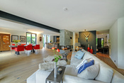 Das Herzstück des Hauses ist der lichtdurchflutete Wohnbereich, der dank der großzügigen Raumaufteilung ausreichend Platz für einen gemütliche Sofalandschaft und einen großen Esstisch bietet. Ein gasbetriebener Panoramakamin sorgt für angenehme Wärme und bodentiefen Fenster bringen ein sonnenverwöhntes Wohlfühlambiente.