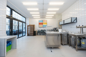 Die Küche ist durch ein Fenster natürlich belichtet und bietet damit eine angenehme Arbeitsatmosphäre. Zusätzlich ist ein ausgeklügeltes Belüftungssystem vorhanden.