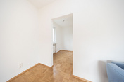 In dieser Räumlichkeit wurde kürzlich neues Mosaikparkett verlegt, das aktuell ein „Comeback“ erfährt und auch in den weiteren Schlafräumen sowie im Arbeitszimmer zu finden ist.