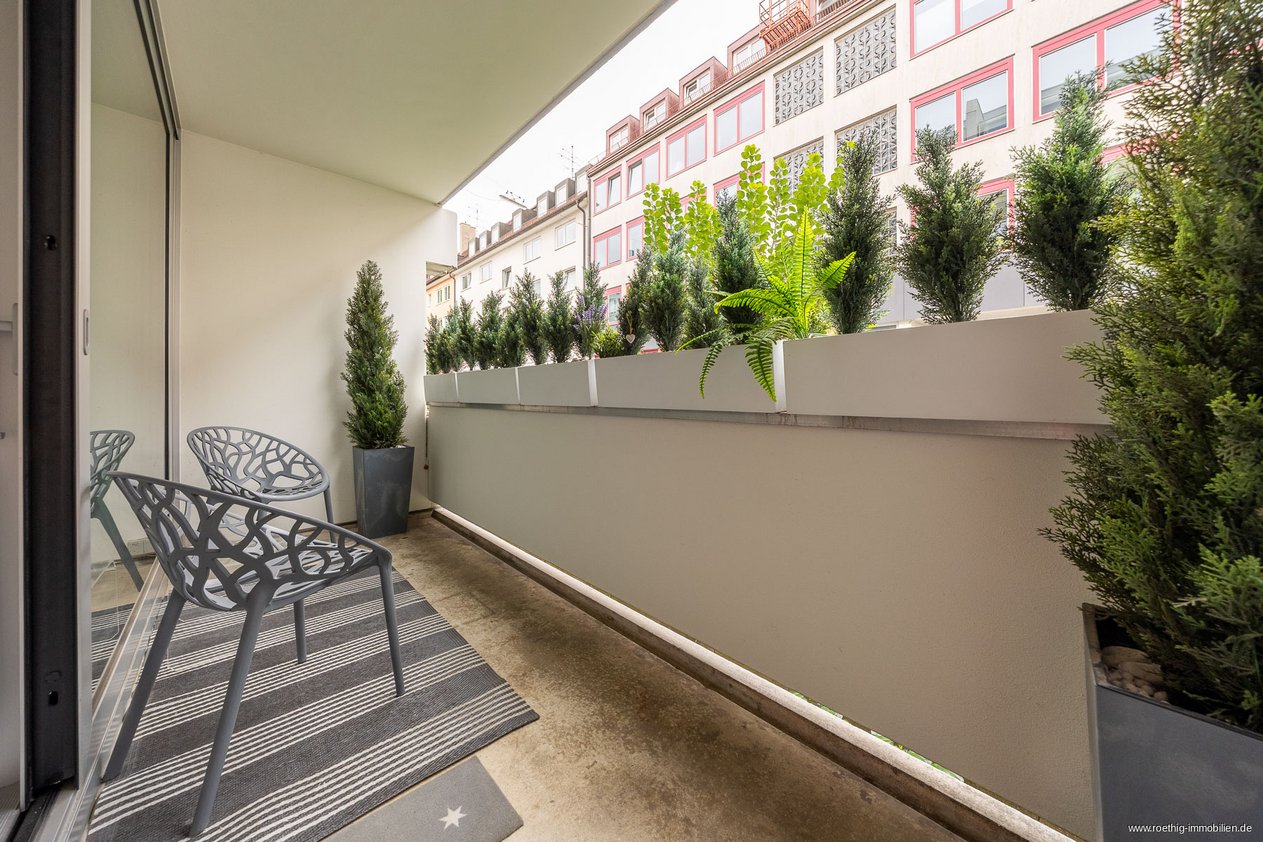 Die bodentiefe Fensterfront gewährt Zugang zum Highlight der Wohnung - dem ca. 6 m² großen, überdachten Balkon in Ostausrichtung. Der perfekte Ort für ein gemütliches Frühstück im Freien!