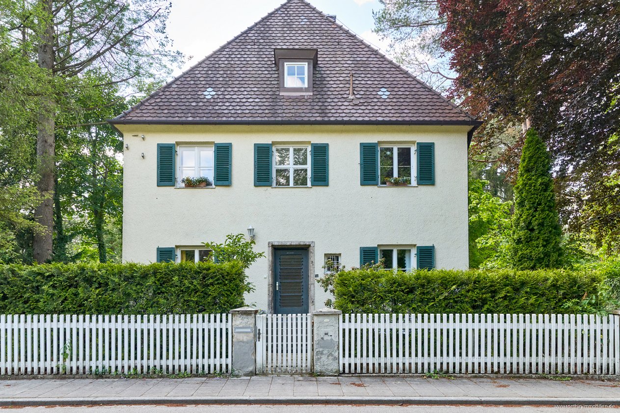 Kathrin Röthig und ihr Team freuen sich, Ihnen dieses wahrhaft einzigartige und äußerst charmante Grundstück mit freistehendem Kaffeemühlenhaus aus den 30er Jahren samt Doppelgarage in Traumlage in Pullach zum Kauf im Original Röthig & Röthig Bieterverfahren anbieten zu dürfen.