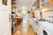 Die großzügige Wohnküche mit angrenzender Kammer befindet sich im zweiten Raum, linker Hand der Wohnungseingangstüre. Aufgrund einer perfekten Raumaufteilung zwischen dem Essbereich, mit Platz für einen gemütlichen Esstisch und dem Küchenbereich sind Ihren Aufteilungsmöglichkeiten keine Grenzen gesetzt. Eine voll ausgestattete Küche mit Waschmaschinenanschluss wurde hier bereits integriert. Ein besonderes Highlight: Aufgrund eines Gasanschlusses können Sie auch mit einer neuen Einbauküche die Vorteile eines Gasherdes genießen.