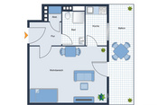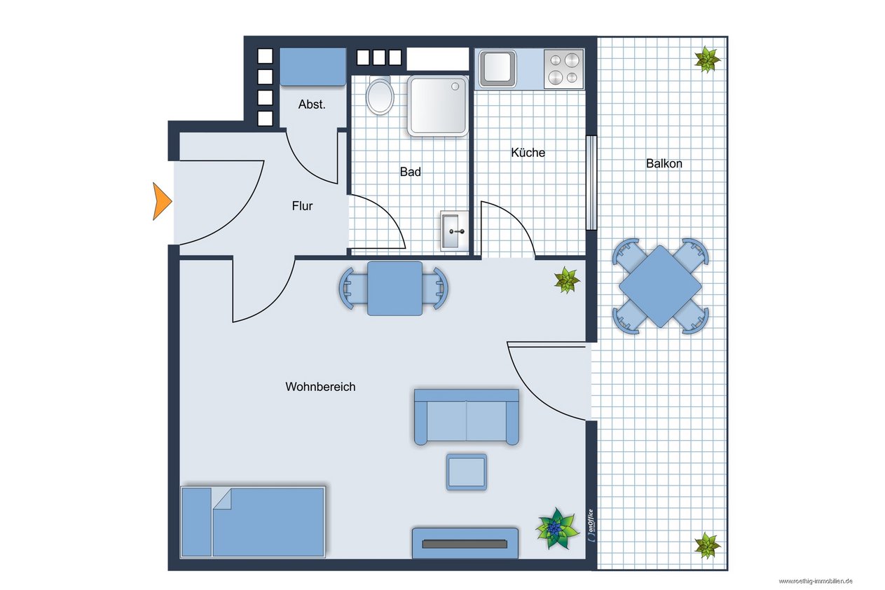 Nach Betreten der Wohnung gelangen Sie direkt in den Eingangsbereich, der die weiteren Räumlichkeiten geschickt miteinander verbindet und ausreichend Platz für Ihre Garderobe bietet. Zusätzlich ist ein praktischer Abstellraum vorhanden.