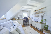 Zu Ihrer linken und rechten Hand sind zwei gemütliche Schlafzimmer angesiedelt. Diese eignen sich ideal als Kinder- oder Arbeitszimmer an. Maßgefertigte, raumhohe Einbauschränke sorgen für genügend Stauraum und die Dachgauben versorgen die Zimmer mit viel Tageslicht.
