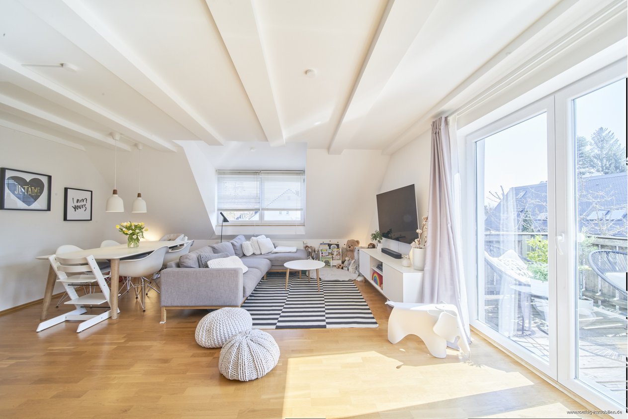 Wir freuen uns, Ihnen diese lichtdurchflutete und moderne 4-Zimmer-Dachgeschoss-Maisonettewohnung im schönen Münchner Stadtteil Bogenhausen anbieten zu dürfen. Die Wohnung befindet sich im 2. Obergeschoss eines Mehrfamilienhauses mit sechs Parteien aus dem Jahre 1950, welches modernisiert und teilweise neu gebaut wurde. Diese traumhafte Immobilie mit Loft-Charakter erstreckt sich über zwei Ebenen und begeistert durch eine exklusive, großzügige Dachterrasse sowie durch die vielen, großen Dachgauben, welche die Wohnung erstrahlen lässt. Zusätzlich schafft das offene Raumkonzept eine angenehme Großzügigkeit.