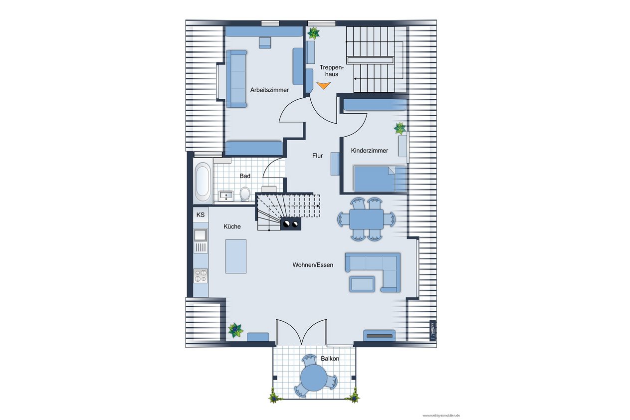 Über das gemeinschaftliche Treppenhaus gelangen Sie in das 2. Obergeschoss und somit in die oberste Etage des Hauses. Hier beginnt Ihr eigener, privater Vorbereich mit Platz für eine geräumige Garderobe vor der Eingangstür.