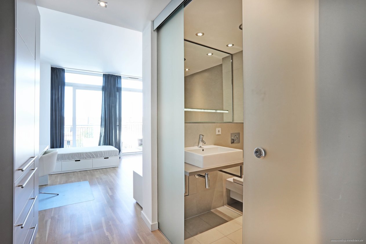 Die Wohnung überzeugt mit Helligkeit, einem idealen Schnitt und neuwertiger Ausstattung. Dank bodentiefer Fenster ist der Raum lichtdurchflutet. Das Bad mit bodengleicher Dusche präsentiert sich modern und äußerst gepflegt.