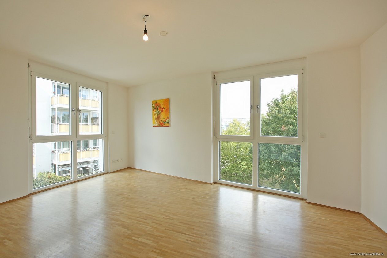 Diese 2-Zimmerwohnung überzeugt mit zwei besonderen Vorzügen: Licht und großzügige Räume. Am Waldrand in Trudering gelegen, ermöglicht sie modernen Wohnkomfort im Grün der Stadt. Damit ist sie ideal für Singels oder Paare. Bereits der Eingangsbereich der Wohnung ist Dank der großen Glastür zum Wohnzimmer lichtdurchflutet. Die exzellente Raumaufteilung mit einem Wohnzimmer von ca. 32m² eröffnet vielfältige Nutzungsmöglichkeiten. Hier haben Sie Zugang zum Balkon und zur Küche. Der Balkon ist nach Westen ausgerichtet. Die moderne Einbauküche ist voll ausgestattet und verstärkt mit ihren hellen Fliesen und Einbauschränken den lichten Wohnkomfort. Das Schlafzimmer glänzt mit bodentiefen Fenstern auf zwei Seiten und einer Größe von ca. 20m². Das Bad verfügt über eine Wanne, einen Handtuchtrockner und einen Waschmaschinenanschluß. In den Wohnbereichen und im Flur ist Holzparkett verlegt. Bad und Küche sind gefliest. Alle Räume verfügen über Fußbodenheizung. Insgesamt ist die Wohnung gut durchdacht und verfügt über eine bestechende Transparenz.