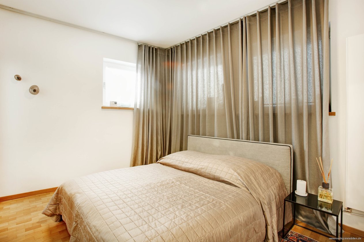 Hier können Sie direkt einziehen und sich wohlfühlen. Die idyllisch gelegene 3,5-Zimmer-Gartenwohnung befindet sich im besten Wohnviertel Harlachings. Hier lädt nicht nur die grüne Umgebung zum Entspannen ein, sondern auch der wunderschöne nach Süd-Westen ausgerichtete Garten der Wohnung. Der Eingangsbereich ist offen und sehr hell gestaltet. Hier sind bereits maßgeschneiderte Schränke, welche über ein Belüftungssystem und Unterlicht am Boden verfügen, eingebaut. Im Erdgeschoss befindet sich das lichtdurchflutete Wohnzimmer, ein Schlafzimmer, die offene Küche mit Einbauten von Kerock und Geräten von Miele. Über eine großzügige Durchreiche ist die Küche zum Esszimmer geöffnet. Auch ein Badezimmer mit Dusche befindet sich im Erdgeschoss und ist mit Lichtelementen und dimmbaren Lichtschaltern ausgestattet. Alle Zimmer verfügen über einen Zugang zur Terrasse.