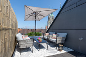 Über bodentiefe Terrassentüren gelangen Sie auf die zweite Dachterrasse, die mit ca. 38 m² und einer optimalen Ausrichtung von Westen nach Osten einen traumhaften Blick auf die gesamte Stadt gewährt. Die Größe der Terrasse eignet sich ausgezeichnet, um Ihren individuellen Außenbereich zu gestalten - ob mit blühenden Hochbeeten oder großen Sitzecken.