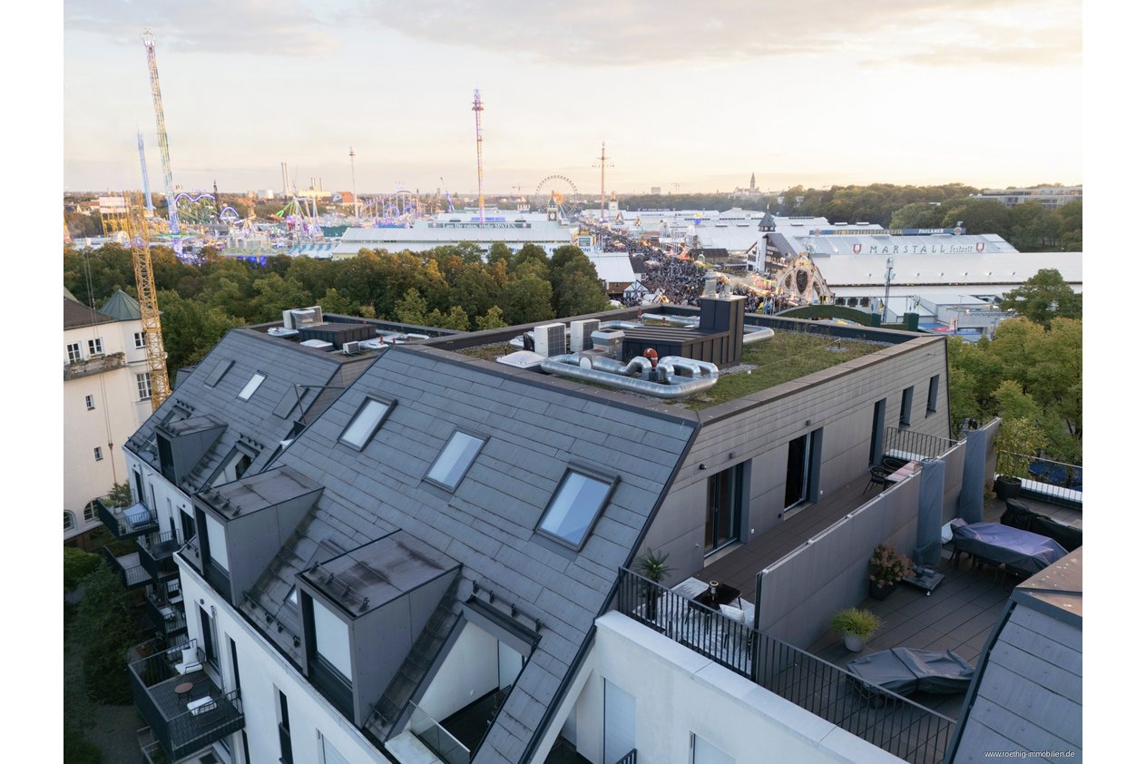 Mit Blick auf die berühmte Theresienwiese und eingebettet in die exklusive Kulisse des „Bavaria Palais“ präsentieren wir Ihnen diese einzigartige Penthousewohnung mit 2 Dachterrassen und 2 Kellerabteilen in absoluter Toplage - ein echtes Juwel am Münchner Immobilienmarkt.