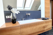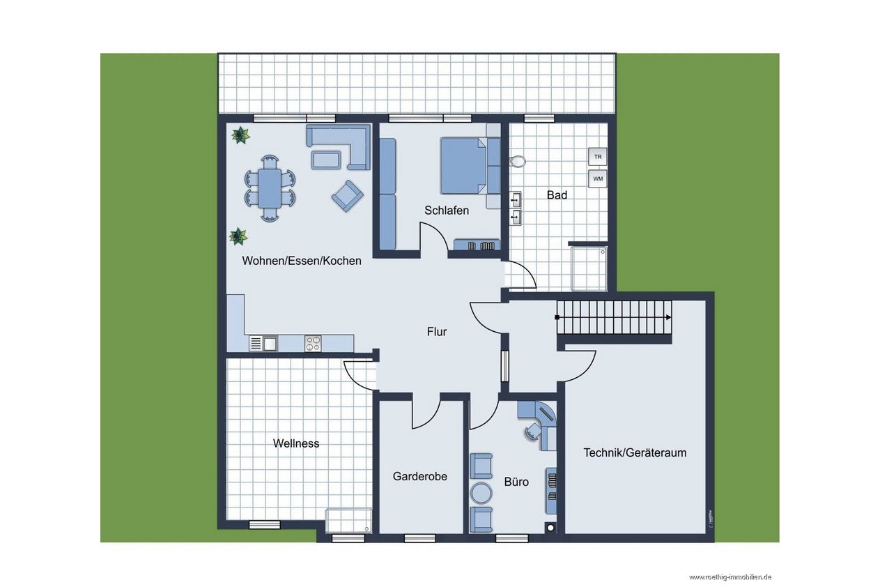 Ergänzt wird das Untergeschoss durch einen Wellnessbereich mit offener Dusche und Platz für Sauna und Fitnessgeräte. Zwei weitere, hochwertig ausgestattete Räume bieten durchdachten Mehrwert und können flexibel genutzt werden. Diese beiden Räume und der Wellnessbereich mit insgesamt 45 m² wurden nicht in die Wohnfläche eingerechnet.