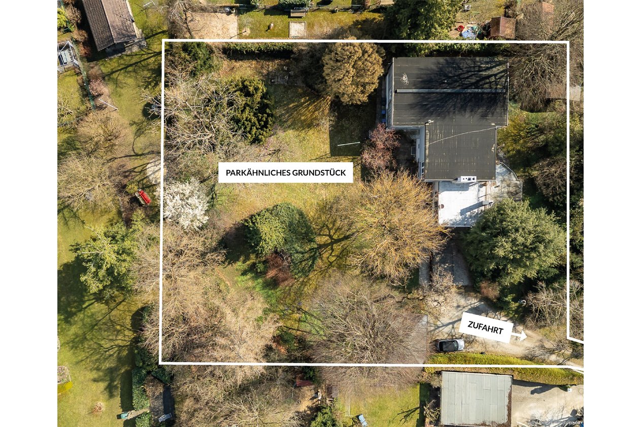 Die lange, begrünte Einfahrt mit Doppelgarage schafft eine angenehme Distanz zur Anwohnerstraße sowie den Nachbarn und führt Sie in ein vollkommen abgeschirmtes, ca. 2.610 m² großes, liebevoll angelegtes Grundstück, welches Ihnen und Ihrer Familie absolute Privatsphäre bietet. Die beeindruckende Gartenlandschaft, umrahmt von einer blickdichten Einfriedung und geprägt von majestätischen, alteingewachsenen Bäumen, besitzt einen anmutigen Park-Charakter.