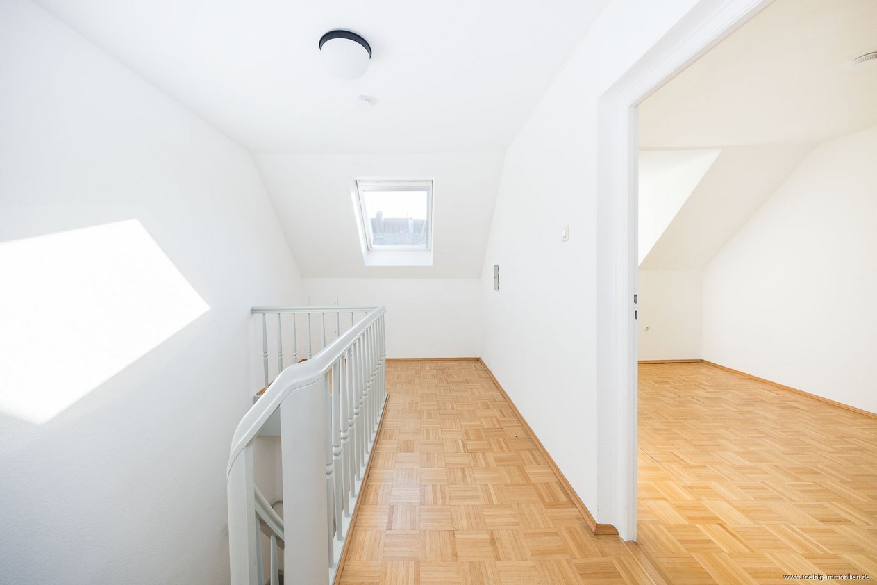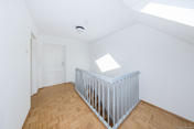 Ein offener Galeriebereich oberhalb der Treppe wird durch ein großes Dachfenster mit viel Tageslicht versorgt und eignet sich hervorragend als gemütliche Arbeits- oder Leseecke.