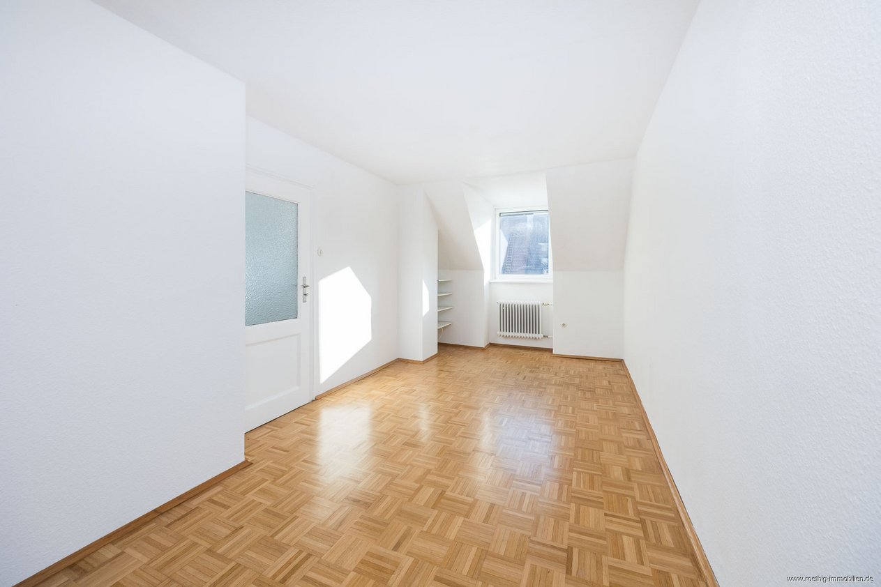 Das angrenzende mögliche Elternschlafzimmer oder auch Jugend-/Gästebereich mit ca. 16 m² überzeugt durch beidseitige Fenster mit Verdunklungsmöglichkeiten und schafft ein helles, freundliches Raumgefühl. Eine charmante, geschickt integrierte Nische bietet zusätzlichen Platz.