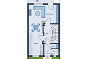 Beim Eintreten in das Haus öffnet sich ein einladender, heller Windfang. Hier befinden sich das Gäste-WC mit Fenster sowie eine clever integrierte Garderobe, die für Ordnung und Komfort im Alltag sorgt. Anschließend betreten Sie den großzügigen Haupt-Flurbereich, der als verbindendes Element alle Räume und Etagen harmonisch erschließt.