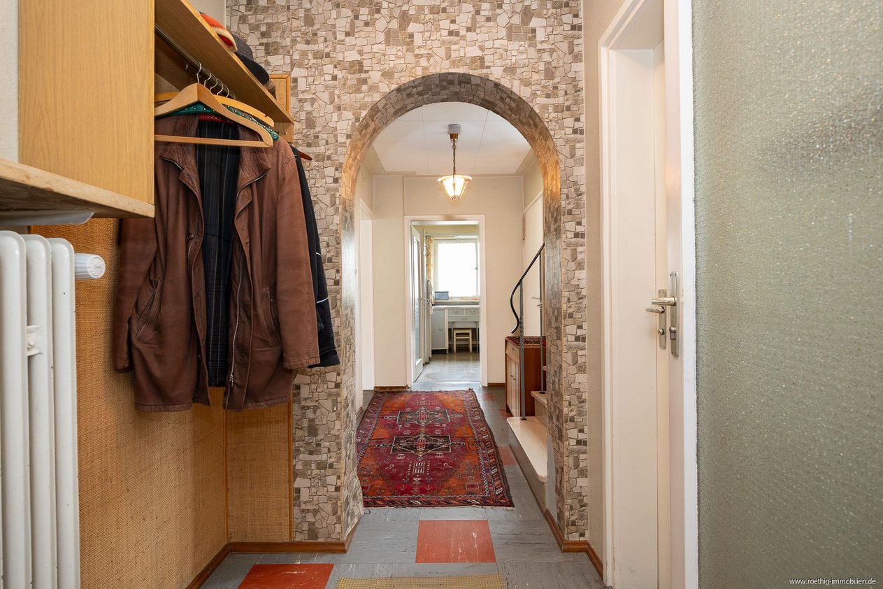 Das freistehende Haus mit teilweise elektrische Rollläden aus dem Jahr 1961 verfügt über eine froßzügige Wohn- & Nutzfläche von ca.175 m². Es haben in der Vergangenheit keine relevanten Sanierungsmaßnahmen stattgefunden. Daher bietet es die Möglichkeit, mit viel Liebe zum Detail saniert zu werden.