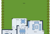 Eingebettet in eine harmonische, einrahmende Bepflanzung entsteht ein grüner, uneinsehbarer Wohlfühlort für Ihre Familie - & gegebenfalls Ihre vierbeinigen Familienmitglieder. Hier bietet sich dank der durchdacht platzierten Terrassenfläche der optimale Ort für Grillabende, Sonnenliegen und sämtliche Outdoor-Aktivitäten. Mit unterschiedlichsten Bereichen wie einem durch eine Bauminsel leicht abgetrennten Bereich für Gemüse & Blumenbeete, entsteht auf der weitläufigen Gartenfläche in Südausrichtung ein straßenabgewandtes, naturbelassenes Refugium mit zahlreichen sonnenverwöhnten Plätzen.
