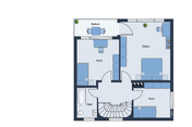 Ergänzt wird das Raumangebot des Obergeschosses durch einen dritten Raum mit großem Fenster in Westausrichtung, der sich ideal als Gästezimmer oder ruhiger Arbeitsbereich eignet und einen angenehmen Blick in den westlichen Teil des Gartens bietet.