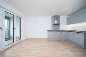 Nach Betreten Ihres neuen Zuhauses (im 2. Obergeschoss) werden Sie sofort von dem lichtdurchfluteten Wohn-/Ess- & Kochbereich in Südausrichtung begrüßt. Der Raum öffnet sich zur verglasten Loggia, die eine perfekte Verbindung zwischen Innen- und Außenbereich schafft. Die hochwertige Eckeinbauküche samt Dunstabzug ist mit modernen "Siemens"-Markengeräten ausgestattet, darunter eine Spülmaschine, eine Waschmaschine und ein Kühlschrank. Zahlreiche Hängeschränke mit praktischer Unterbeleuchtung bieten viel Stauraum und machen die Küche zu einem funktionalen und stilvollen Mittelpunkt der Wohnung.