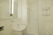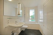 Nach dem Betreten der Wohnung gelangen Sie in den großzügig geschnittenen Flur, der ausreichend Platz für eine Garderobe bietet. Ein Gäste-Bad mit Dusche und WC ist im Eingangsbereich ansässig. Sowohl die Schlafräume als auch das Wohn- und Esszimmer sowie der Flur sind mit einem gepflegten Parkettboden ausgestattet. Die Küche und die Badezimmer verfügen hingegen über ansprechende Bodenfliesen.