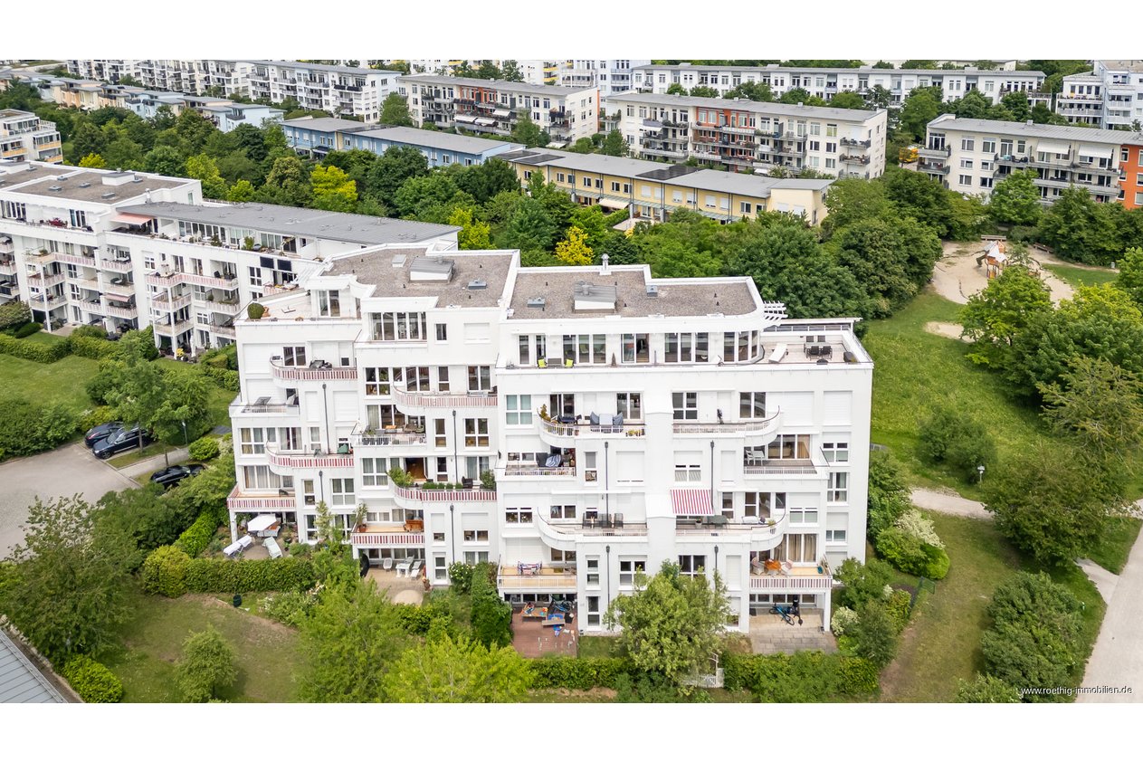 Das Gebäude, das in hochwertiger Bauweise von einem renommierten Münchner Bauträger errichtet wurde, befindet sich eingebettet in ein gepflegtes Häuserensemble – abgeschirmt von der Straße und frei von Verkehrslärm.