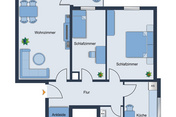 Mittig in der Wohnung liegt das rund 10 m² große Kinder- bzw. Arbeitszimmer, das sich zum ruhigen Innenhof nach Osten orientiert – ideal für reichlich morgendliches Sonnenlicht und eine angenehm helle Arbeits- oder Spielatmosphäre.