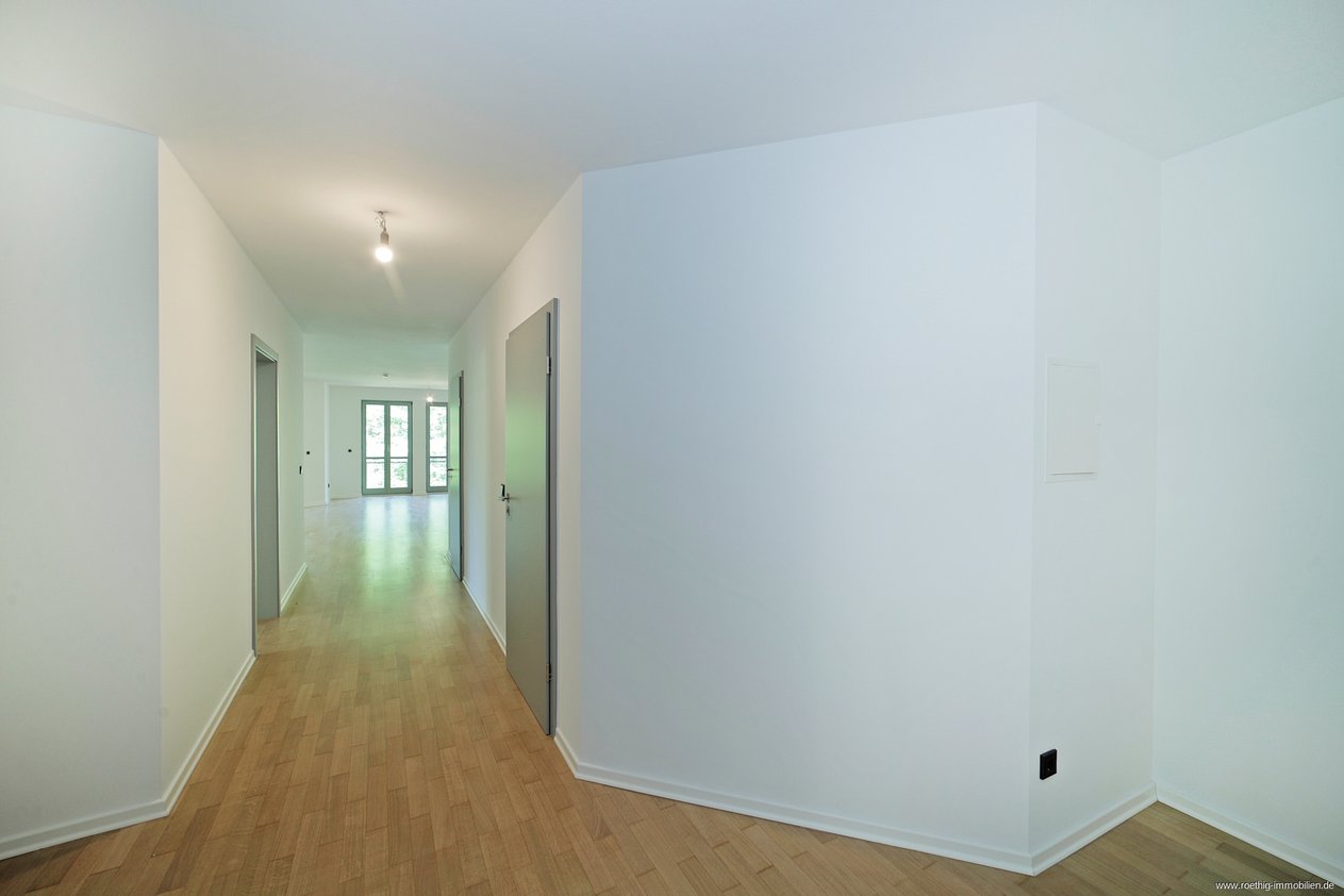 Nach Betreten dieses Schmuckstücks, befinden Sie sich im einladenden Flur mit Abstellraum, viel Platz für Ihre Garderobe und für weiteres Mobiliar. Der hochwertige Parkettboden, welcher in der gesamten Wohnung, außer in den beiden Badezimmern und in der Küche verlegt ist, versprüht seinen Charme und die Fußbodenheizung sorgt für wohlige Wärme - perfekt um Ihre Gäste zu empfangen!