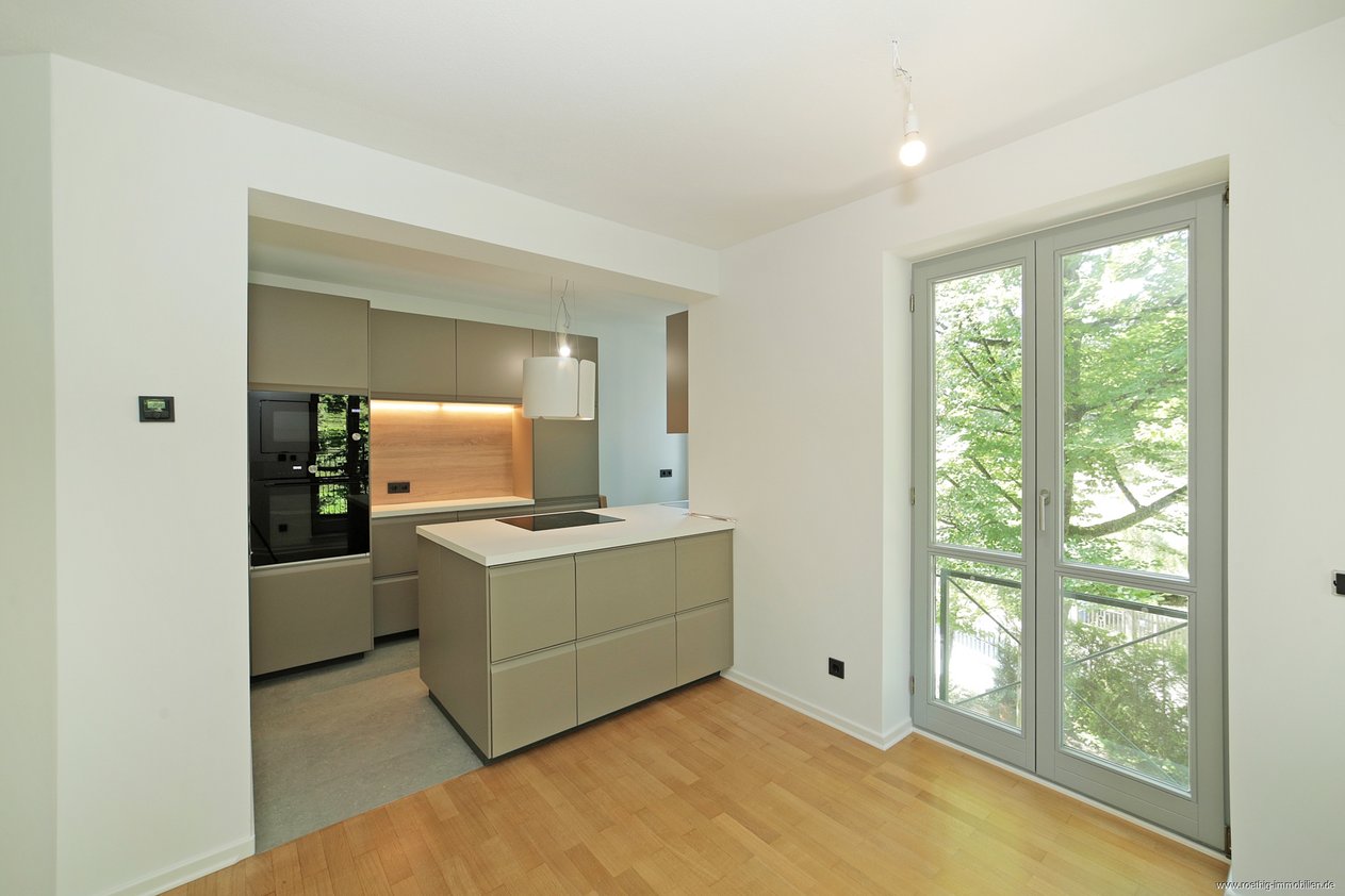 Wir freuen uns, Ihnen diese Rarität in absoluter Toplage in fußläufiger Entfernung zur Isar präsentieren zu dürfen. Diese großzügige 3-Zimmer-Wohnung befindet sich im 1. Obergeschoss eines repräsentativen Mehrfamilienhauses aus dem Jahr 1994 und ist bequem über den Aufzug zu erreichen. Besonders hervorzuheben sind die hochwertige Ausstattung, die lichtdurchfluteten Räumlichkeiten, der großzügige Wohn-/ Essbereich mit offener Küche, die beiden modernen Badezimmer sowie die überdachte Terrasse mit Blick ins Grüne.