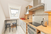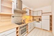 Über den großzügigen Wohnbereich zugänglich befindet sich die separate Küche. Sie fügt sich harmonisch in das Gesamtkonzept ein und bietet mit ihrer modernen Einbauküche und integrierten Einbaugeräten sowie dem eigenen Fenster nicht nur Funktionalität, sondern auch ein helles, einladendes Ambiente.