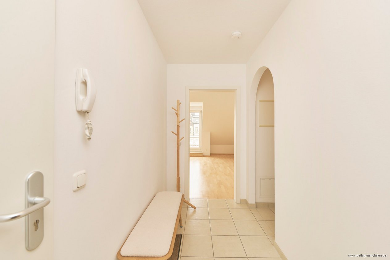 Der Zugang zur Anlage erfolgt über den liebevoll gestalteten grünen Innenhof - ein geschützter Ort, der Ruhe ausstrahlt und den besonderen Charakter des Hauses spürbar macht. Schon hier entsteht das Gefühl, in eine kleine, grüne Oase einzutreten - mitten in der Stadt und doch angenehm ruhig. Das im Jahr 2004 erbaute Wohnhaus, angeschlossen an das Fernwärmenetz, präsentiert sich in einem äußerst gepflegten Zustand und vermittelt bereits beim Betreten des Treppenhauses ein Gefühl von Qualität und Wertigkeit. Mit dem Aufzug gelangen Sie bequem in das vierte Obergeschoss - zu Ihrem neuen Zuhause.