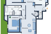 Nach Betreten der Wohnung befinden Sie sich im einladenden Flur, der mit einer maßgefertigten Einbaugarderobe, großformatigen Bodenfliesen und modernen Deckenspots ausgestattet ist. Die Fußbodenheizung versprüht wohlige Wärme und das Gäste-WC ist ebenfalls ansässig.