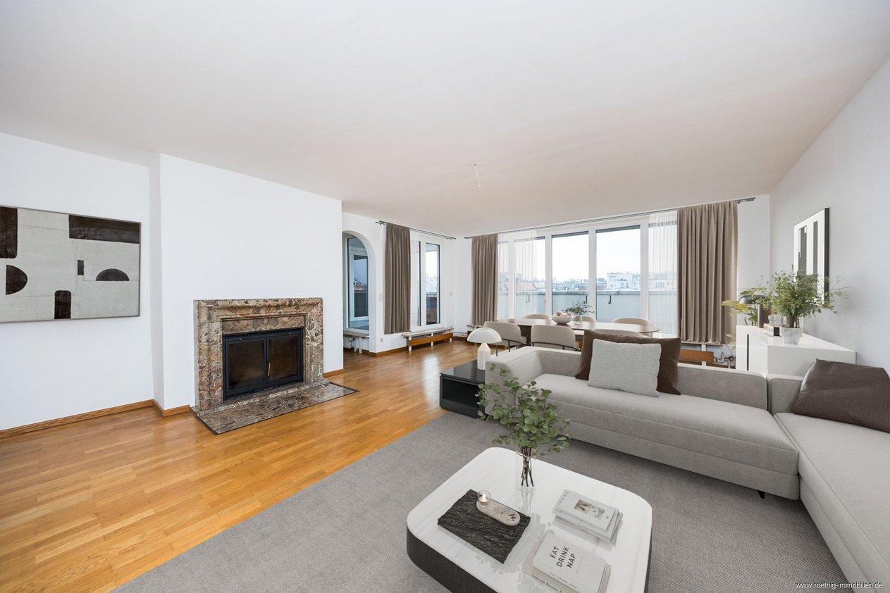 Kathrin Röthig und ihr Team freuen sich, Ihnen ein einmaliges Immobilienangebot im Original RÖTHIG & RÖTHIG Bieterverfahren anbieten zu dürfen: Eine großzügige und lichtdurchflutete 4-Zimmer-Dachterrassenwohnung mit Tiefgaragen-Einzelstellplatz, Speicherabteil & Wohnküche. Die Kombination aus zentraler, zugleich angenehm ruhiger Lage, einer weitläufigen Dachterrasse sowie der exklusiven Stellung als alleinige Einheit in der obersten Wohnetage mit Aufzug ist herausragend. Hier wohnen Sie in maximaler Privatsphäre in einer der besten Wohngegenden der Innenstadt.