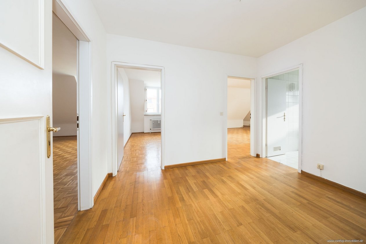 Im 5. Obergeschoss, zwischen Josephsplatz und Theresienstraße sowie nur wenige Schritte von der Schellingstraße entfernt, erwartet Sie diese einzigartige, weitläufige Dachgeschosswohnung mit Dachterrasse und Lift samt traumhaftem, freiem Blick über die Dächer der Maxvorstadt.