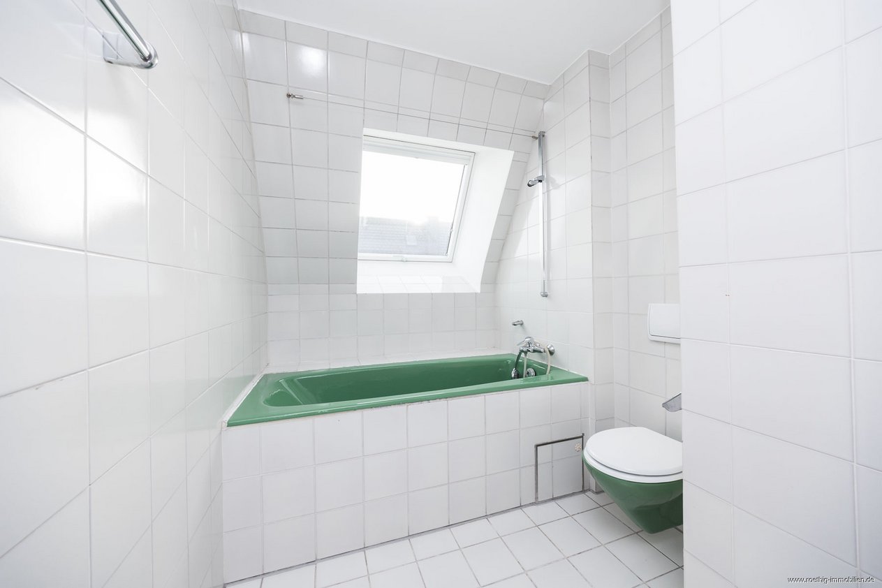 Mit über ca. 23 m² bietet der Elternbereich einen idealen Rückzugsort im privateren Teil der Wohnung und ist mit einem großen Dachflächenfenster sowie einem weiteren Doppelfenster ausgestattet. Der durchdachte Grundriss eignet sich perfekt für ein großes Doppelbett und weitere persönliche Einrichtungselemente. Die angenehm abgeschrägte Decke trägt trotz der Raumgröße zu einem gemütlichen Wohngefühl bei. Das geräumige Familienbad verfügt über ein großes Dachflächenfenster in Südausrichtung und schafft einen harmonischen Abschluss des privaten Wohnbereichs.