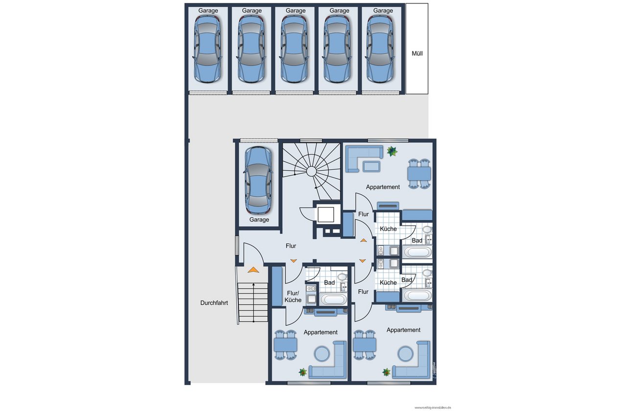 Der Mindestgebotspreis für das Mehrfamilienhaus inklusive der 6 Einzelgaragen liegt bei € 5.000.000,00.