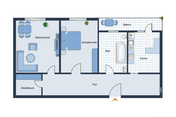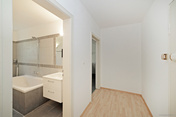 Nach Betreten der Wohnung stehen Sie im zentralen Flur, welcher alle Räumliche geschickt miteinander verbindet. Eine Garderobe lässt sich hier problemlos integrieren und der pflegeleichte, helle Boden, der sich durch die Wohnräume zieht, sorgt bereits im Eingangsbereich für ein wohnliches Ambiente. Zusätzlich ist am Ende des Flurs ein praktischer Abstellraum angesiedelt.
