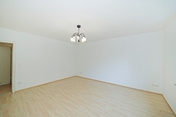 Das Herzstück der Wohnung ist der helle Wohn- und Essbereich. Der ideale rechteckige Schnitt ermöglicht vielfältige Einrichtungsmöglichkeiten – sowohl eine gemütliche Sofaecke als auch ein großzügiger Essbereich lassen sich hier ideal realisieren.
