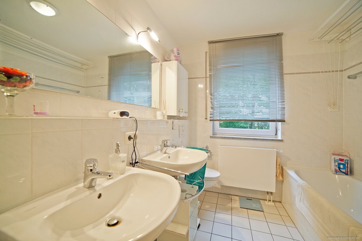 Bad und Gästebad (beide mit Fenster) sind großzügig geschnitten. Das Bad verfügt sowohl über eine Badewanne, als auch über eine Dusche, zwei Waschbecken, einem großen Spiegel und einem Waschmaschinenanschluss. Die voll ausgestatte Einbauküche bietet reichlich Arbeitsfläche und Stauraum.