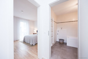 Links vom Eingangsbereich finden Sie zwei gut geschnittene Schlafzimmer, die dank breiter bodentiefer Fenster viel Tageslicht erhalten. Aufgrund des durchdachten Grundrisses sind Ihren Einrichtungsideen keine Grenzen gesetzt. Hier finden Sie den perfekten Ort für erholsame Nächte und einen gelungenen Start in den Tag. Je nach Bedarf können diese Räume auch als Kinderzimmer, Ankleide oder Gästezimmer genutzt werden.