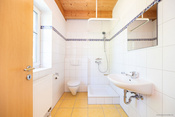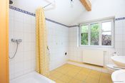 Am Ende des Flures gelangen Sie in das helle, große Tageslichtbadezimmer. Bestückt mit einer Dusche, einer Badewanne, einem WC und zwei Waschbecken lässt es keine Wünsche offen.