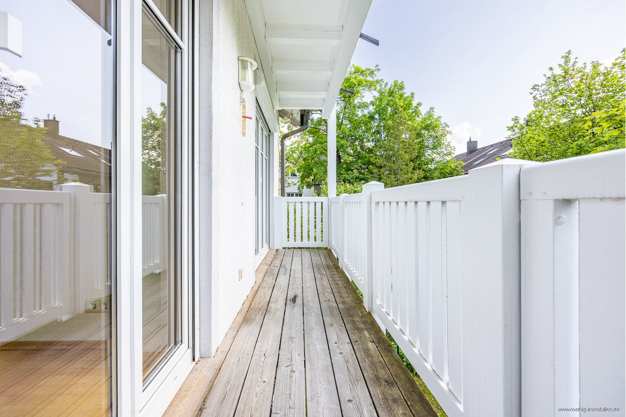 Eine absolute Besonderheit ist der große Süd-/West Balkon mit einer Fläche von ca. 20 m². Dieser bietet aufgrund seiner Größe genügend Platz für Outdoormöbel oder eine liebevolle Bepflanzung. Über eine imposante Treppe erreichen Sie die Empore - ein wirkliches Highlight der Wohnung. Von dieser aus gelangen sie über einen Flur zu weiteren Räumen im Dachgeschoss.