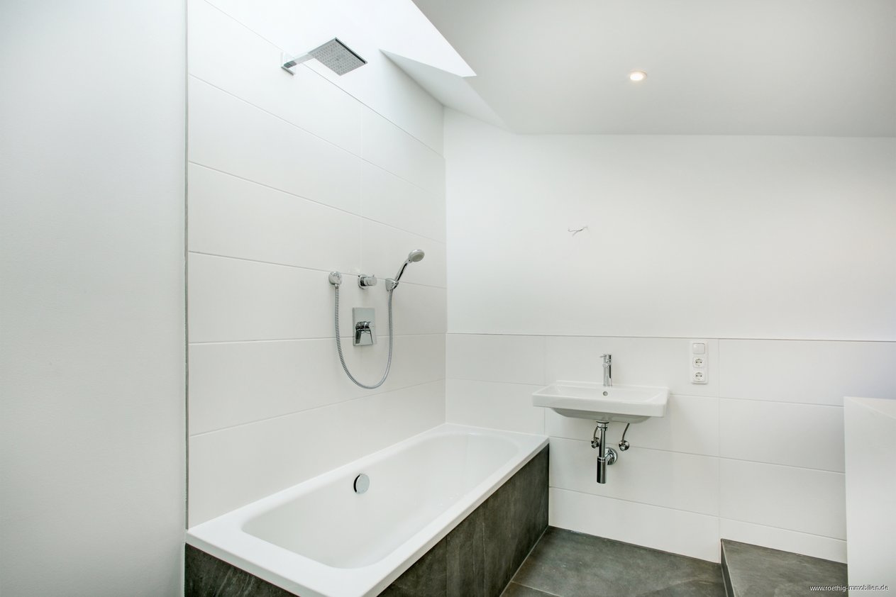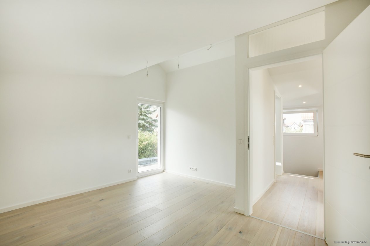 Das Obergeschoß (Dachgeschoß), wurde komplett nach neuesten Standard aufgesetzt und bietet dem zukünftigen Mieter noch verschiedene Optionen der Aufteilung. Diese entnehmen Sie bitte aus den beigefügten Grundrissvarianten. So kann das große Schlafzimmer entsprechend den Mieterwünschen aufgeteilt werden oder als ein großer Raum belassen werden. Darüber hinaus befindet sich im Obergeschoß ein helles, elegantes Bad mit Oberlicht und Dachflächenfenster sowie ein weiteres Schlafzimmer.