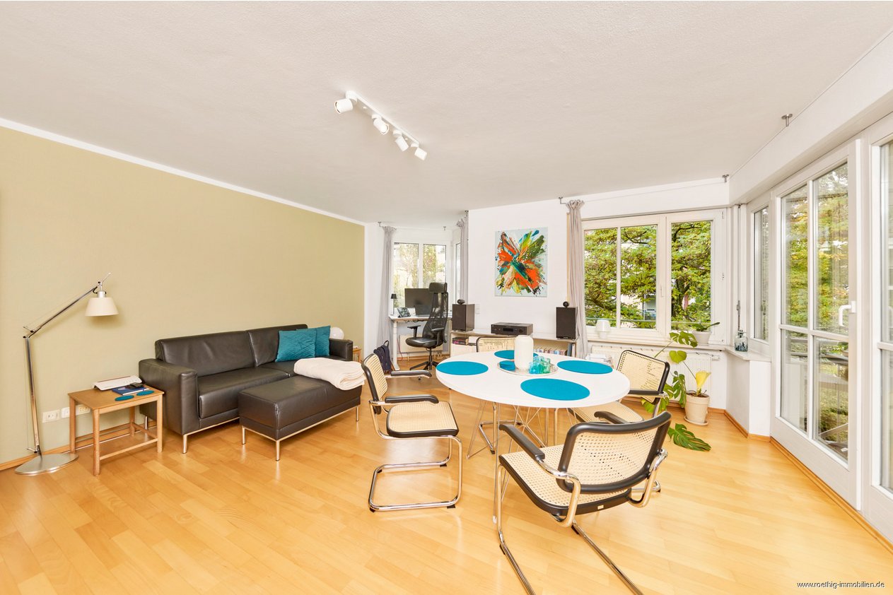 Vom Wohnbereich aus gelangen Sie auf den nach Südosten ausgerichteten, überdachten Balkon, der einen herrlichen Blick ins Grüne und in den ruhigen Innenhof bietet. Genießen Sie hier die Morgensonne bis in den frühen Nachmittag – Ihr idealer Rückzugsort, umgeben von viel Grün. Dank der Überdachung lässt sich der Balkon das ganze Jahr über nutzen – ein wunderbarer Ort, um zur Ruhe zu kommen, einen Kaffee zu trinken oder einfach den Tag entspannt ausklingen zu lassen.
