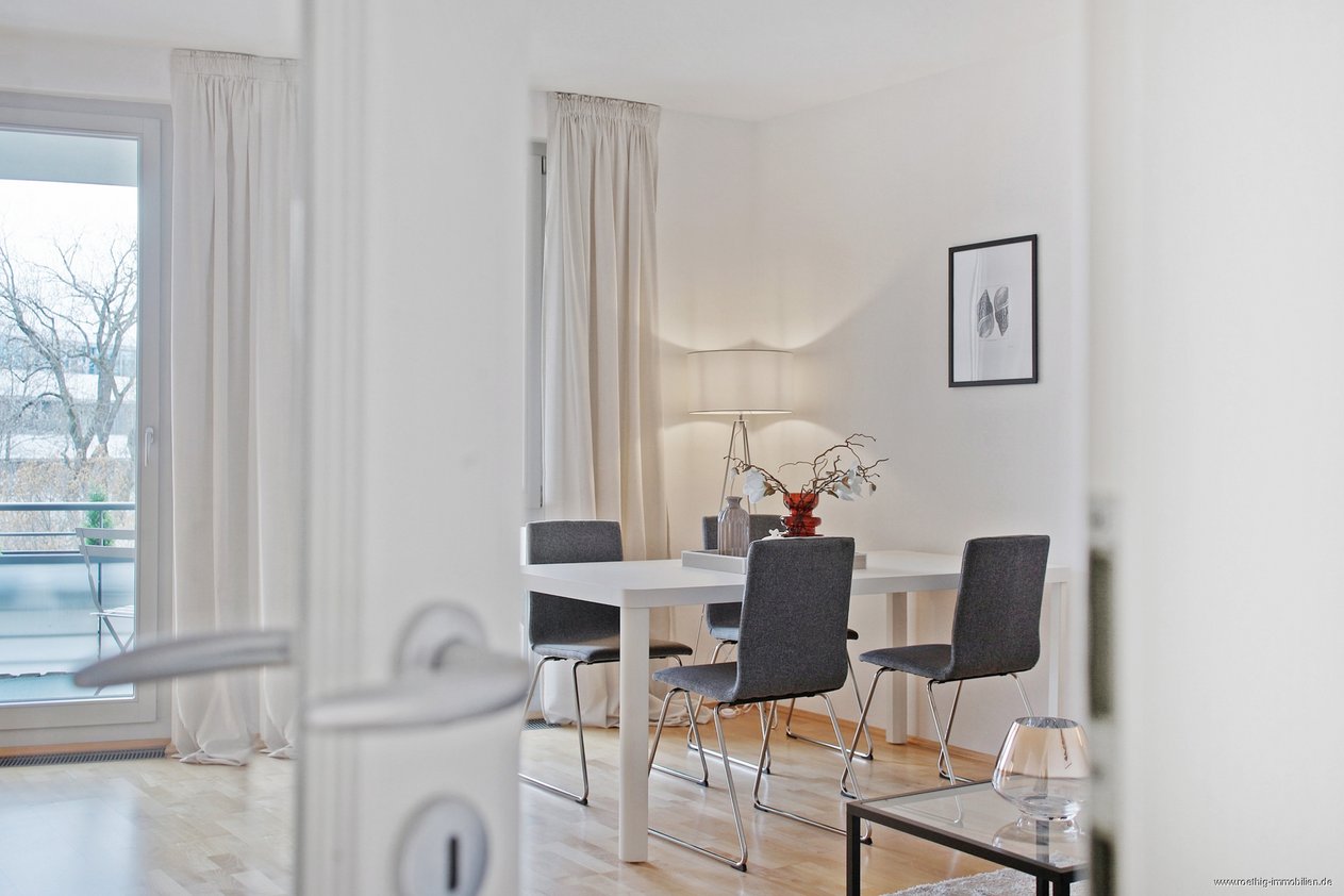 Der Wohn- und Essbereich ist dank der bodentiefen Fensterelemente sehr hell und großzügig. Ein besonderes Highlight ist die große Süd-Südwest-Loggia, zu der Sie von hier aus Zugang haben. Die überdachte Loggia lädt zu entspannten Sommerabenden mit Freunden und Familie ein. Auch im Winter kann man hier geschützt sitzen und die ersten Sonnenstrahlen genießen.
