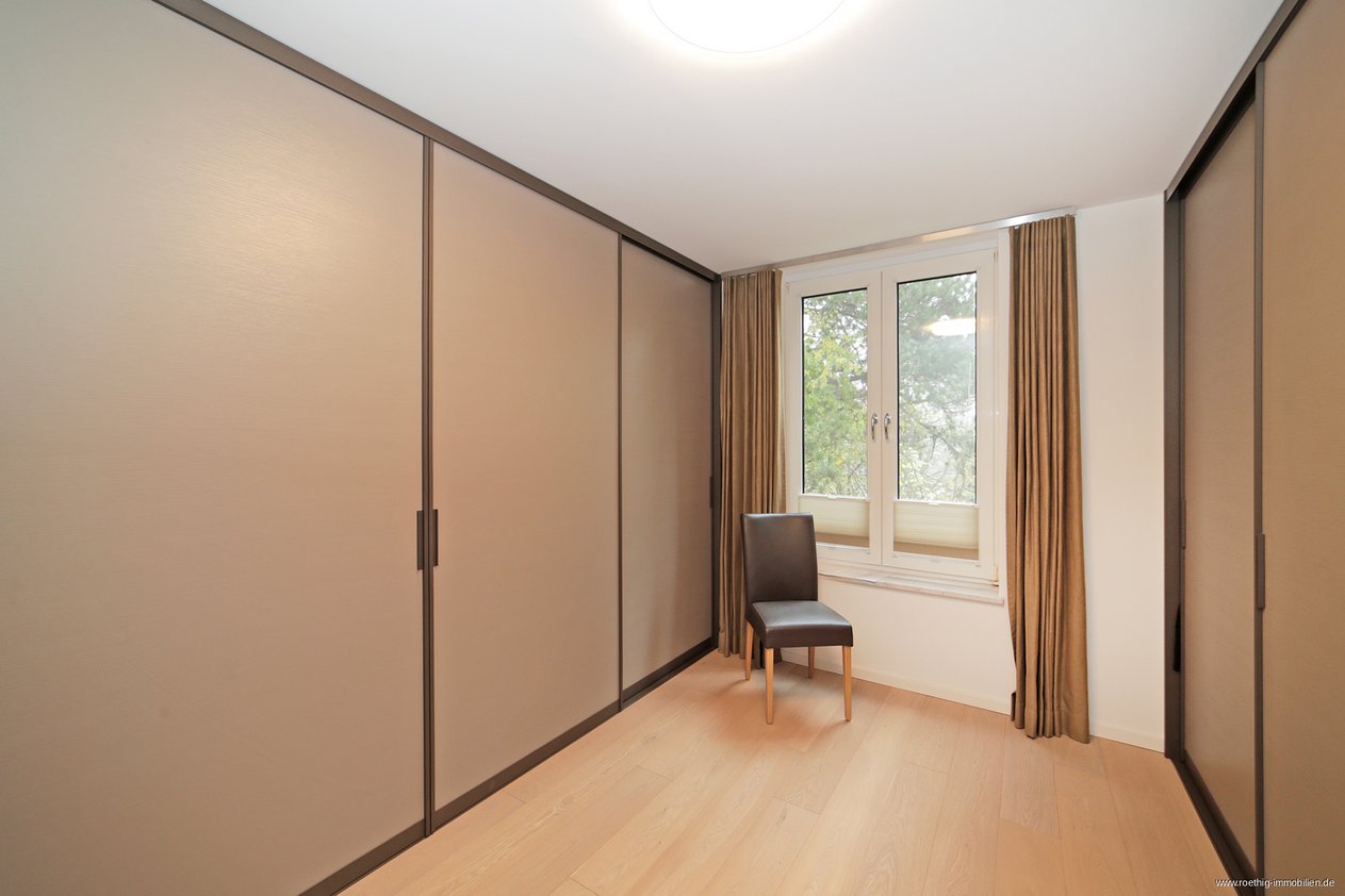 Die Wohnung verfügt außerdem über zwei Schlafzimmer, die beide großzügig geschnitten sind. Eines der Zimmer ist als Ankleide konzipiert, kann aber auch problemlos als weiteres Schlafzimmer genutzt werden und überzeugt durch seine flexible Nutzungsmöglichkeit.