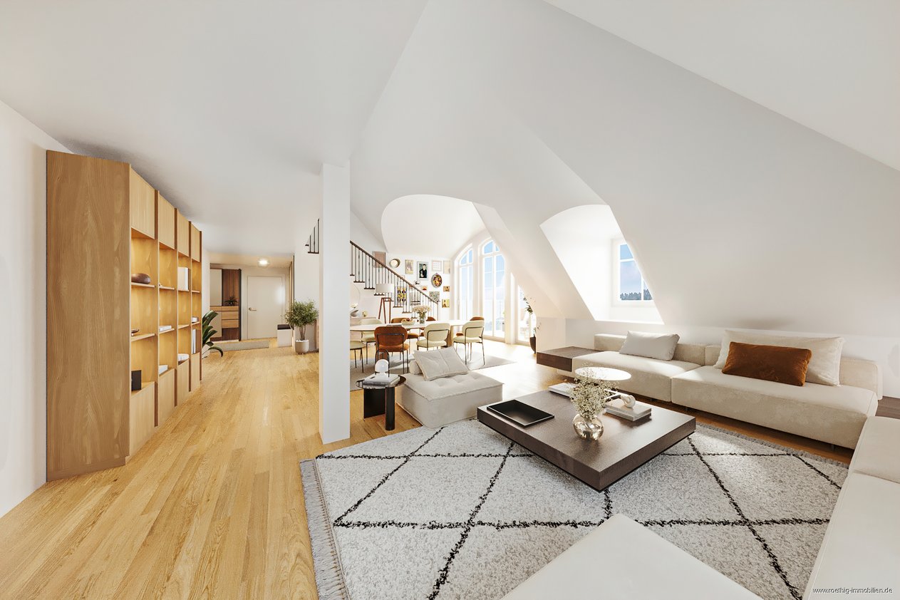 Der Mindestgebotspreis für diese helle Dachgeschosswohnung mit Galeriebereich & zwei Balkonen liegt bei € 2.200.000,-. zzgl. dem Tiefgarageneinzelstellplatz für € 50.000,-