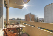 Der Südbalkon ist überdacht und eignet sich somit ideal, um Sonne zu tanken und um schöne Sommerabende zu genießen - der perfekte Ort, um zu entspannen und einfach mal abzuschalten. Genügend Platz für einen Sitzbereich sowie für einen Tisch ist problemlos vorhanden. Der Blick ins Grüne in Verbindung mit der fantastischen Weitsicht macht den Außenbereich zu einem absoluten Highlight.