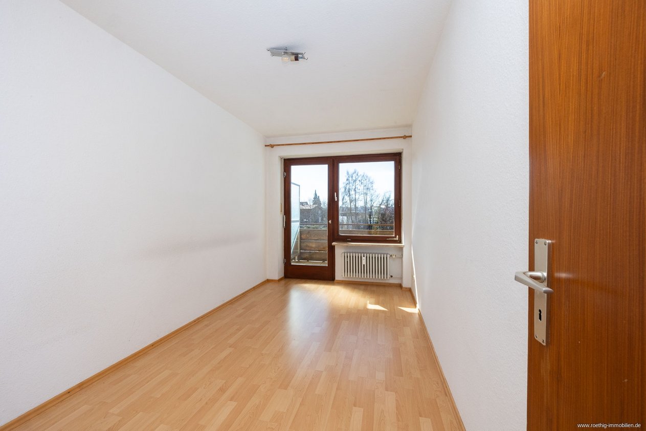 Die drei gleichgroßen Räume eröffnen vielseitige Gestaltungsmöglichkeiten – ob Homeoffice, Gästezimmer oder Kinderbereich. Dank bodentiefer Balkontüren sind alle Räume lichtdurchflutet & profitieren von der sonnigen Süd-/Westausrichtung. Der überdachte Balkon mit Stromanschluss schafft einen geschützten Rückzugsort & begeistert mit einem einmaligen Fernblick bis zu den Alpen.